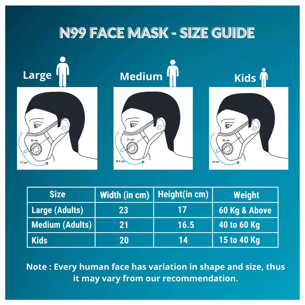 2. WASHABLE AND REUSABLE - The N99 mask is washable and has a Life of 300+ Breathing Hours (approx 3 Months).