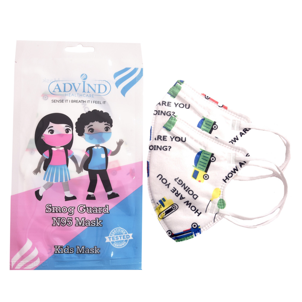Advind Healthcare N95 Kids mask is a four-layered protective gear that protects children from airborne particulate matter, toxic gases, allergens, bacteria, viruses, etc. It offers 95% filtration efficiency and filters out harmful pollutants and microorganisms.